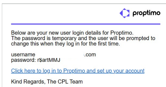 Your administrator will create your Property Portal account and you'll receive an email with an invitation to sign up. The email includes your username and a temporary password.